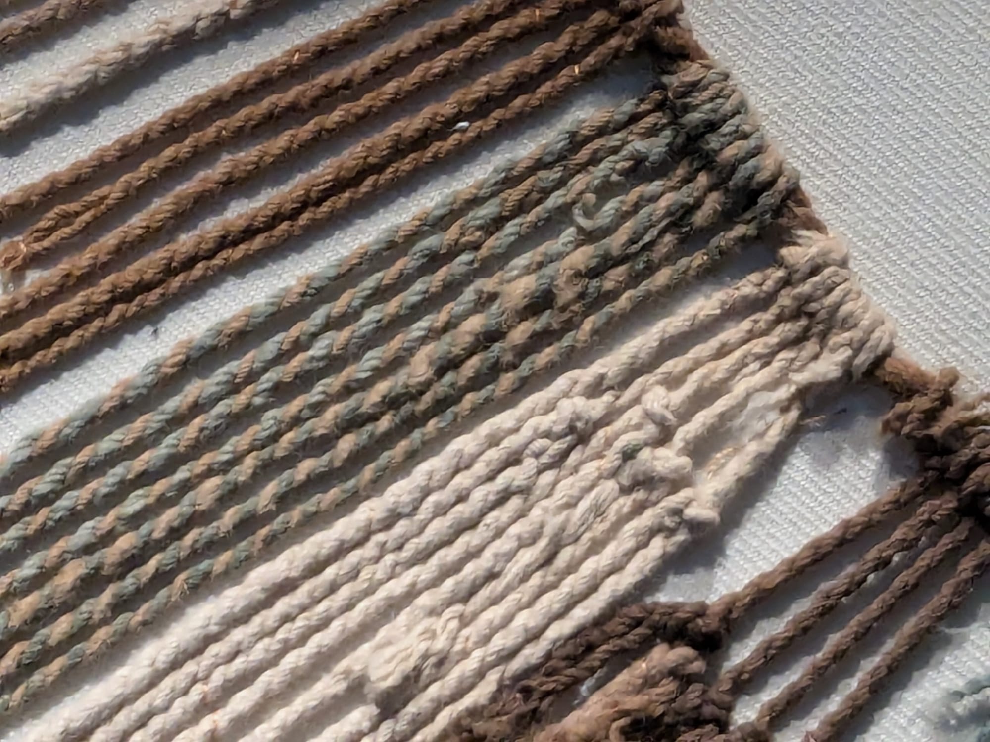 Ver este khipu en persona puso de relieve un problema clave para los investigadores que trabajan principalmente con imágenes digitales como medio para aprender sobre los khipus e interactuar con ellos. Las condiciones de iluminación en las que se toman las imágenes, así como cualquier alteración o realce posterior del color, son fundamentales para la correcta representación cromática. Me llamó especialmente la atención que la coloración de este khipu se percibía de manera distinta en persona en comparación con algunas imágenes saturadas en color que había visto anteriormente. Por ello, conviene ser muy cauteloso con el color al examinar imágenes de khipus.